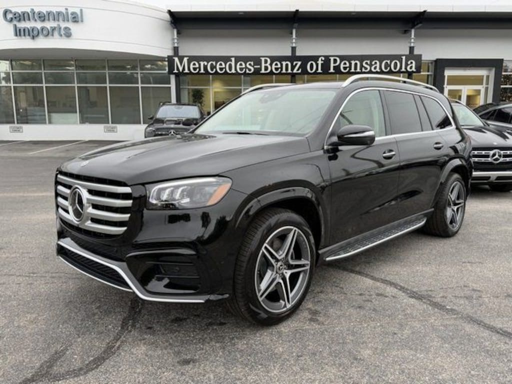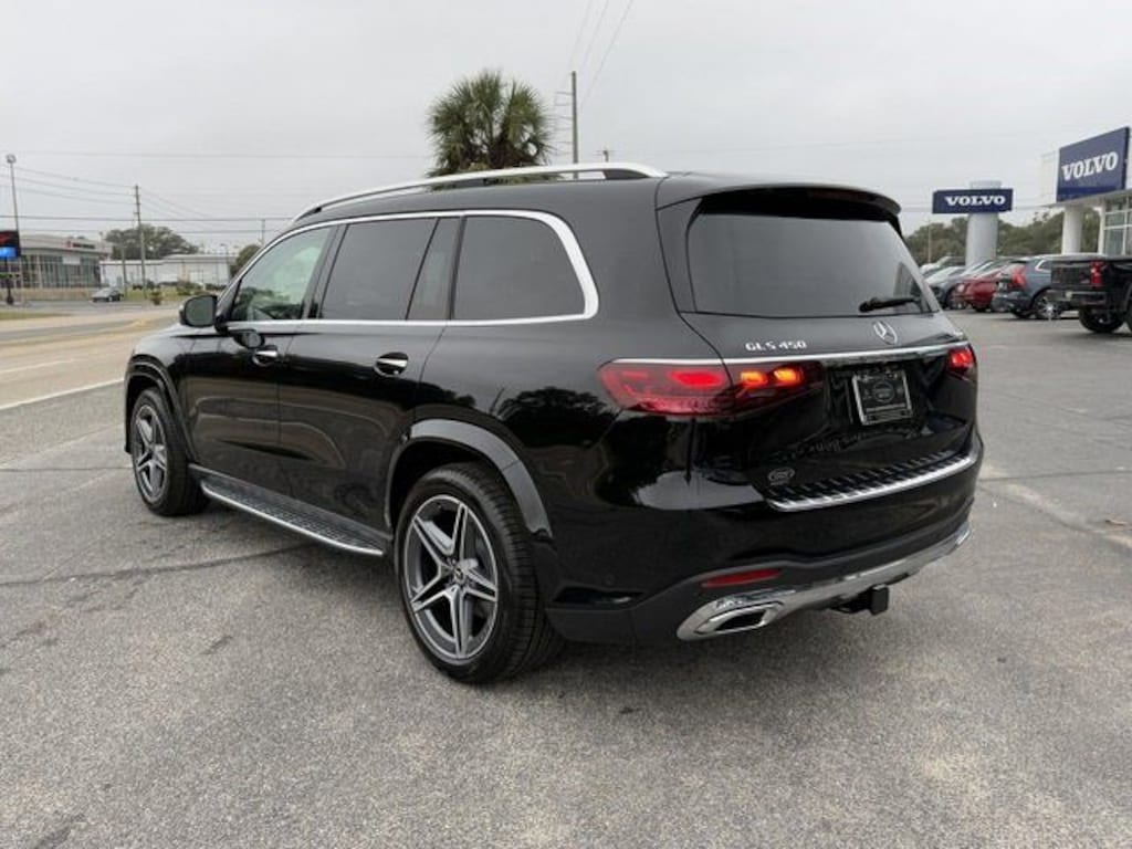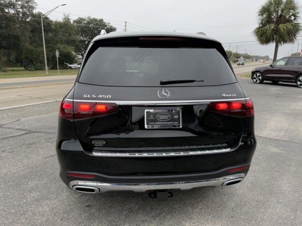 Black 2025 Mercedes-Benz GLS GLS 450 4MATIC® 4MATIC® 9-Speed Automatic 3.0L I6 13 Speakers, 3rd row seats: split-bench, 4-Wheel Disc Brakes, 7-Seat Configuration, ABS brakes, Adaptive suspension, Air Conditioning, Alloy wheels, AM/FM radio: SiriusXM, Apple CarPlay®/Android Auto®, Auto High-beam Headlights, Auto tilt-away steering wheel, Auto-dimming door mirrors, Auto-dimming Rear-View mirror, Auto-leveling suspension, Automatic temperature control, Brake assist, Bumpers: body-color, Child-Seat-Sensing Airbag, Compass, Delay-off headlights, Driver door bin, Driver vanity mirror, Dual front impact airbags, Dual front side impact airbags, Electronic Stability Control, Emergency communication system: eCall Emergency System, Exterior Parking Camera Rear, Four wheel independent suspension, Front anti-roll bar, Front Bucket Seats, Front Center Armrest w/Storage, Front dual zone A/C, Front reading lights, Fully automatic headlights, Garage door transmitter: HomeLink, Head restraints memory, Heated and Ventilated Power Front Seats with Memory, Heated door mirrors, Heated front seats, Illuminated entry, Knee airbag, Leather steering wheel, Low tire pressure warning, MB-Tex Upholstery, Memory seat, Navigation system: MB Navigation, Occupant sensing airbag, Outside temperature display, Overhead airbag, Overhead console, Panic alarm, Passenger door bin, Passenger vanity mirror, Power adjustable front head restraints, Power door mirrors, Power driver seat, Power Liftgate, Power moonroof: Panorama, Power passenger seat, Power steering, Power windows, Premium audio system: MBUX, Radio: Burmester® Surround Sound System, Rain sensing wipers, Rear air conditioning, Rear anti-roll bar, Rear dual zone A/C, Rear fog lights, Rear reading lights, Rear seat center armrest, Rear window defroster, Rear window wiper, Reclining 3rd row seat, Remote keyless entry, Security system, Speed control, Speed-sensing steering, Speed-Sensitive Wipers, Split folding rear seat, Spoiler, Steering wheel memory, Steering wheel mounted audio controls, Tachometer, Telescoping steering wheel, Tilt steering wheel, Traction control, Trip computer, Turn signal indicator mirrors, Variably intermittent wipers, Ventilated front seats, Weather band radio, and Wheels: 21" Triple 5-Spoke.