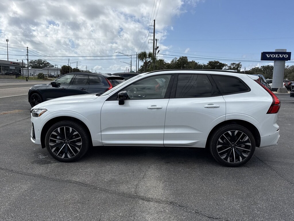 Crystal White 2026 Volvo XC60 B5 Ultra AWD Automatic with Geartronic 2.0L I4 Turbocharged DOHC 16V LEV3-ULEV70 Climate Package (Heated Rear Seats and Heated Steering Wheel), Protection Package Premier (All-Weather Floor Mats, Bumper Cover, Cargo Tray, First Aid Kit, and Wheel Locks), AWD, 14 Speakers, 4-Wheel Disc Brakes, ABS brakes, Air Conditioning, Alloy wheels, AM/FM radio: SiriusXM, Anti-whiplash front head restraints, Auto High-beam Headlights, Auto-dimming door mirrors, Auto-dimming Rear-View mirror, Automatic temperature control, Brake assist, Bumpers: body-color, Delay-off headlights, Driver door bin, Driver vanity mirror, Dual front impact airbags, Dual front side impact airbags, Electronic Stability Control, Emergency communication system: Volvo Car Connect Plus (4-Year Subscription), Exterior Parking Camera Rear, Four wheel independent suspension, Front anti-roll bar, Front Bucket Seats, Front Center Armrest, Front dual zone A/C, Front reading lights, Fully automatic headlights, Garage door transmitter: HomeLink, Genuine wood console insert, Genuine wood dashboard insert, harman/kardon® Speakers, Heads-Up Display, Heated and Ventilated Front Bucket Seats, Heated door mirrors, Heated front seats, Illuminated entry, Knee airbag, Leather steering wheel, Low tire pressure warning, Massage Front Seats, Memory seat, Navigation System, Occupant sensing airbag, Outside temperature display, Overhead airbag, Panic alarm, Passenger door bin, Passenger vanity mirror, Perforated Nappa Leather Upholstery, Power door mirrors, Power driver seat, Power Liftgate, Power moonroof, Power passenger seat, Power steering, Power windows, Radio data system, Radio: Harman/Kardon Premium Sound System, Rain sensing wipers, Rear air conditioning, Rear anti-roll bar, Rear dual zone A/C, Rear fog lights, Rear reading lights, Rear seat center armrest, Rear window defroster, Rear window wiper, Remote keyless entry, Security system, Speed control, Split folding rear seat, Spoiler, Steering wheel mounted audio controls, Tachometer, Telescoping steering wheel, Tilt steering wheel, Traction control, Trip computer, Turn signal indicator mirrors, Variably intermittent wipers, Ventilated front seats, and Wheels: 19" 5-V Spoke Diamond Cut Alloy. AWD.