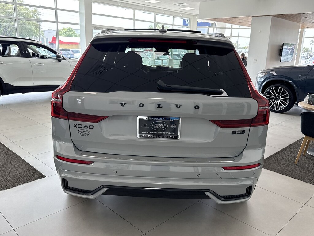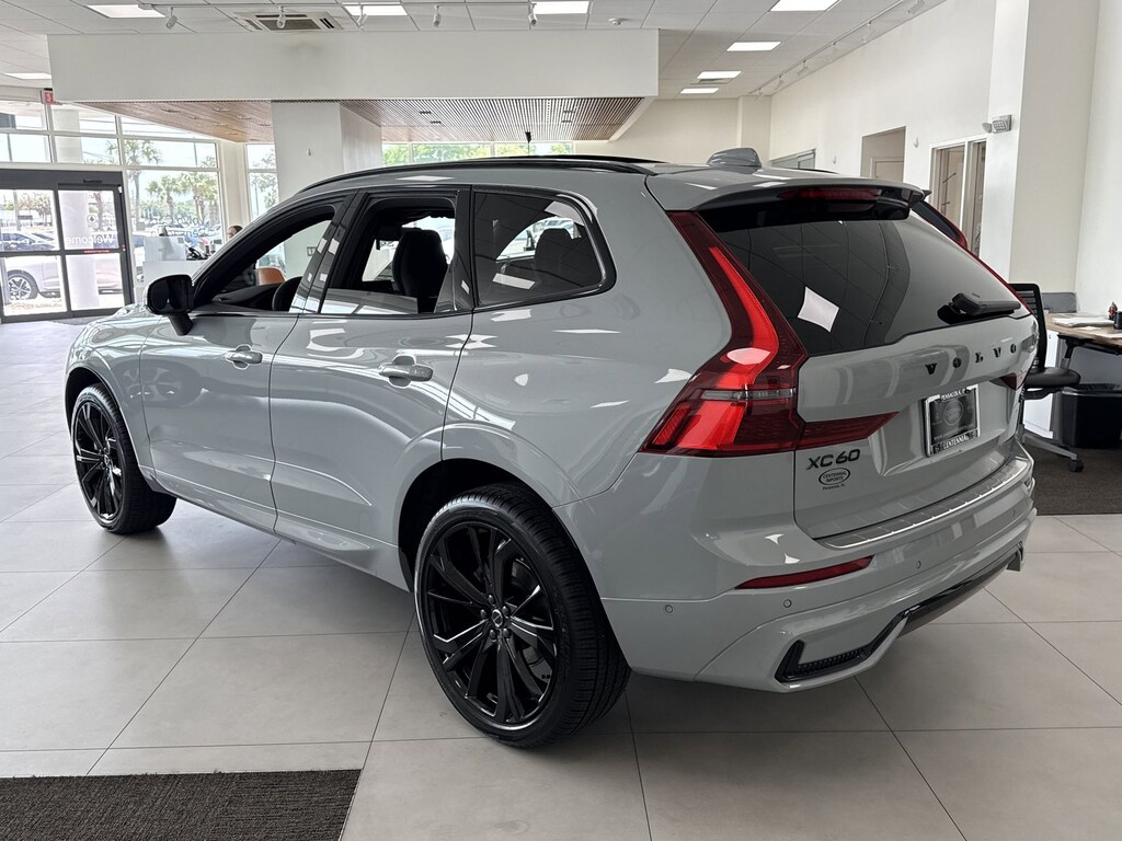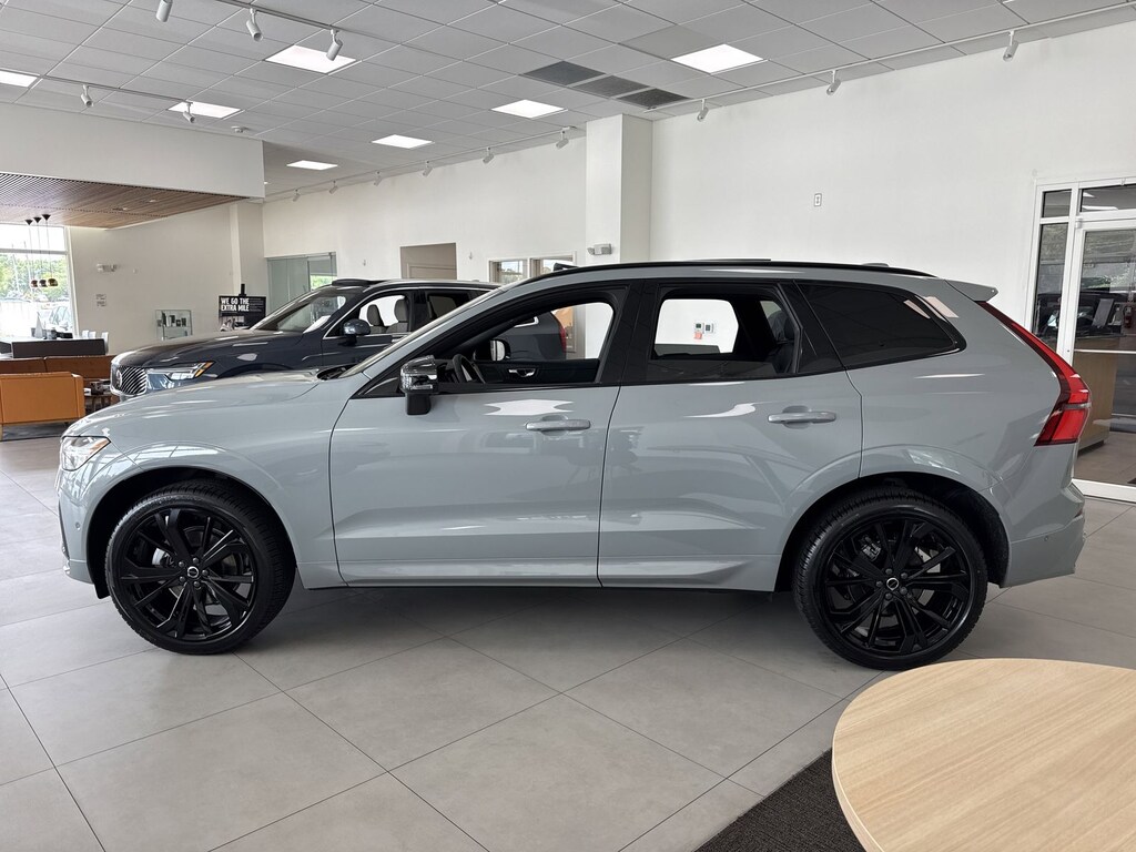 Gray Metallic 2026 Volvo XC60 B5 Ultra Black Edition AWD Automatic with Geartronic 2.0L I4 Turbocharged DOHC 16V LEV3-ULEV70 Protection Package Premier (All-Weather Floor Mats, Bumper Cover, Cargo Tray, First Aid Kit, and Wheel Locks), AWD, 14 Speakers, 4-Wheel Disc Brakes, ABS brakes, Air Conditioning, Alloy wheels, AM/FM radio: SiriusXM, Anti-whiplash front head restraints, Auto High-beam Headlights, Auto-dimming door mirrors, Auto-dimming Rear-View mirror, Automatic temperature control, Brake assist, Bumpers: body-color, Delay-off headlights, Driver door bin, Driver vanity mirror, Dual front impact airbags, Dual front side impact airbags, Electronic Stability Control, Emergency communication system: Volvo Car Connect Plus (4-Year Subscription), Exterior Parking Camera Rear, Four wheel independent suspension, Front anti-roll bar, Front Bucket Seats, Front Center Armrest, Front dual zone A/C, Front reading lights, Fully automatic headlights, Garage door transmitter: HomeLink, Genuine wood console insert, Genuine wood dashboard insert, harman/kardon® Speakers, Heads-Up Display, Heated and Ventilated Front Bucket Seats, Heated door mirrors, Heated front seats, Illuminated entry, Knee airbag, Leather steering wheel, Low tire pressure warning, Memory seat, Navigation System, Occupant sensing airbag, Outside temperature display, Overhead airbag, Panic alarm, Passenger door bin, Passenger vanity mirror, Perforated Nappa Leather Upholstery, Power door mirrors, Power driver seat, Power Liftgate, Power moonroof, Power passenger seat, Power steering, Power windows, Radio data system, Radio: Harman/Kardon Premium Sound System, Rain sensing wipers, Rear air conditioning, Rear anti-roll bar, Rear dual zone A/C, Rear fog lights, Rear reading lights, Rear seat center armrest, Rear window defroster, Rear window wiper, Remote keyless entry, Security system, Speed control, Split folding rear seat, Spoiler, Steering wheel mounted audio controls, Tachometer, Telescoping steering wheel, Tilt steering wheel, Traction control, Trip computer, Turn signal indicator mirrors, Variably intermittent wipers, Ventilated front seats, and Wheels: 21" 5-Spoke Glossly Black. AWD.