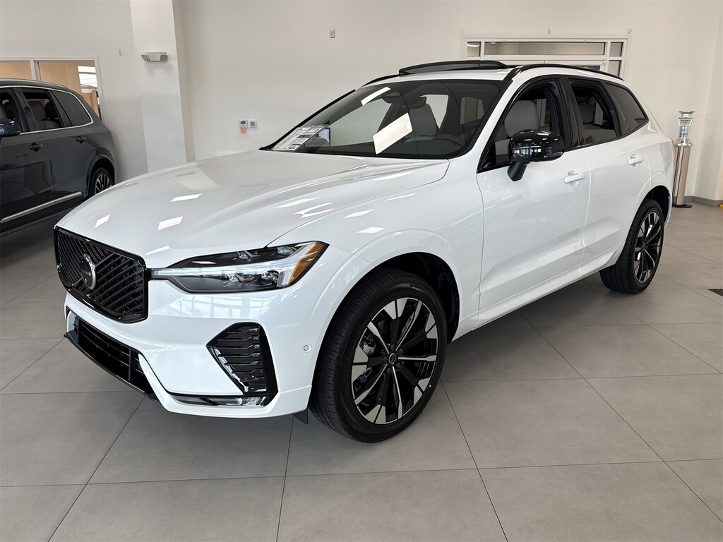 Crystal White 2026 Volvo XC60 B5 Plus AWD Automatic with Geartronic 2.0L I4 Turbocharged DOHC 16V LEV3-ULEV70 Protection Package Premier (All-Weather Floor Mats, Bumper Cover, Cargo Tray, First Aid Kit, and Wheel Locks), AWD, 10 Speakers, 4-Wheel Disc Brakes, ABS brakes, Air Conditioning, Alloy wheels, AM/FM radio: SiriusXM, Anti-whiplash front head restraints, Auto High-beam Headlights, Auto-dimming door mirrors, Auto-dimming Rear-View mirror, Automatic temperature control, Brake assist, Bumpers: body-color, Delay-off headlights, Driver door bin, Driver vanity mirror, Dual front impact airbags, Dual front side impact airbags, Electronic Stability Control, Emergency communication system: Volvo Cars App w/4 Year Subscription, Exterior Parking Camera Rear, Four wheel independent suspension, Front anti-roll bar, Front Bucket Seats, Front Center Armrest, Front dual zone A/C, Front reading lights, Fully automatic headlights, Garage door transmitter: HomeLink, Heated door mirrors, Heated Front Bucket Seats, Heated front seats, Illuminated entry, Knee airbag, Leather Shift Knob, Low tire pressure warning, Memory seat, Nordico Upholstery, Occupant sensing airbag, Outside temperature display, Overhead airbag, Panic alarm, Passenger door bin, Passenger vanity mirror, Power door mirrors, Power driver seat, Power Liftgate, Power moonroof, Power passenger seat, Power steering, Power windows, Radio data system, Radio: High Performance Sound System, Rain sensing wipers, Rear anti-roll bar, Rear fog lights, Rear reading lights, Rear seat center armrest, Rear window defroster, Rear window wiper, Remote keyless entry, Security system, Speed control, Split folding rear seat, Spoiler, Steering wheel mounted audio controls, Tachometer, Telescoping steering wheel, Tilt steering wheel, Traction control, Trip computer, Turn signal indicator mirrors, Variably intermittent wipers, and Wheels: 20" 5-Y Spoke Diamond Cut Alloy. AWD.