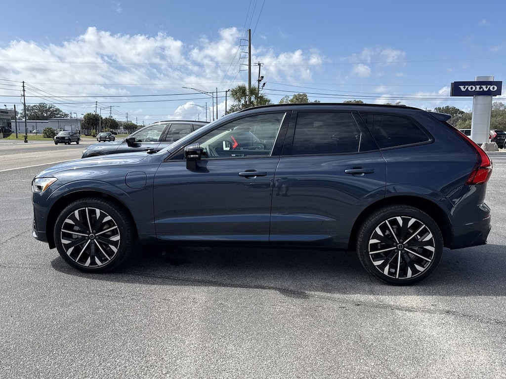 Denim Blue Metallic 2026 Volvo XC60 Plug-In Hybrid T8 Ultra AWD Automatic with Geartronic 2.0L I4 Hybrid Turbocharged DOHC 16V LEV3-SULEV30 Climate Package (Heated Rear Seats and Heated Steering Wheel), Protection Package Premier (All-Weather Floor Mats, Bumper Cover, Cargo Tray, First Aid Kit, and Wheel Locks), 2.0L I4 Hybrid Turbocharged DOHC 16V LEV3-SULEV30, 14 Speakers, 4-Wheel Disc Brakes, ABS brakes, Air Conditioning, Alloy wheels, AM/FM radio: SiriusXM, Anti-whiplash front head restraints, Auto High-beam Headlights, Auto-dimming door mirrors, Auto-dimming Rear-View mirror, Automatic temperature control, Brake assist, Bumpers: body-color, Delay-off headlights, Driver door bin, Driver vanity mirror, Dual front impact airbags, Dual front side impact airbags, Electronic Stability Control, Emergency communication system: Volvo Car Connect Plus (4-Year Subscription), Exterior Parking Camera Rear, Four wheel independent suspension, Front anti-roll bar, Front Bucket Seats, Front Center Armrest, Front dual zone A/C, Front reading lights, Fully automatic headlights, Garage door transmitter: HomeLink, Genuine wood console insert, Genuine wood dashboard insert, harman/kardon® Speakers, Heads-Up Display, Heated and Ventilated Power Front Seats, Heated door mirrors, Heated front seats, Illuminated entry, Knee airbag, Leather steering wheel, Low tire pressure warning, Luggage Cover, Massage Front Seats, Memory seat, Navigation System, Occupant sensing airbag, Outside temperature display, Overhead airbag, Panic alarm, Passenger door bin, Passenger vanity mirror, Perforated Nappa Leather Upholstery, Power door mirrors, Power driver seat, Power Liftgate, Power moonroof, Power passenger seat, Power steering, Power windows, Radio data system, Radio: Harman/Kardon Premium Sound, Rain sensing wipers, Rear anti-roll bar, Rear fog lights, Rear reading lights, Rear seat center armrest, Rear window defroster, Rear window wiper, Remote keyless entry, Security system, Speed control, Split folding rear seat, Spoiler, Steering wheel mounted audio controls, Tachometer, Telescoping steering wheel, Tilt steering wheel, Traction control, Trip computer, Turn signal indicator mirrors, Variably intermittent wipers, Ventilated front seats, Wheels: 19" 5-V Spoke Diamond Cut Alloy, and Wheels: 20" 5-Y Spoke Diamond Cut Alloy. 2.0L I4 Hybrid Turbocharged DOHC 16V LEV3-SULEV30.