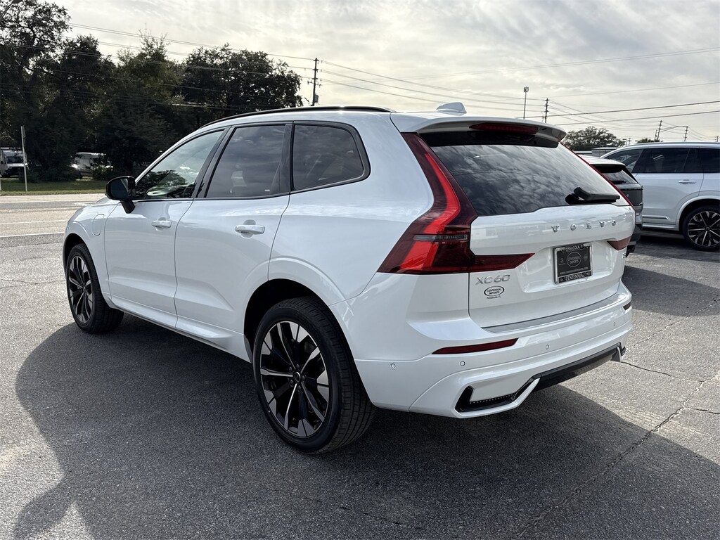 Crystal White 2026 Volvo XC60 Plug-In Hybrid T8 Plus AWD Automatic with Geartronic 2.0L I4 Hybrid Turbocharged DOHC 16V LEV3-SULEV30 Climate Package (Heated Rear Seats and Heated Steering Wheel), Protection Package Premier (All-Weather Floor Mats, Bumper Cover, Cargo Tray, First Aid Kit, and Wheel Locks), 2.0L I4 Hybrid Turbocharged DOHC 16V LEV3-SULEV30, 11 Speakers, 4-Wheel Disc Brakes, ABS brakes, Air Conditioning, Alloy wheels, AM/FM radio: SiriusXM, Anti-whiplash front head restraints, Auto High-beam Headlights, Auto-dimming door mirrors, Auto-dimming Rear-View mirror, Automatic temperature control, Brake assist, Bumpers: body-color, Delay-off headlights, Driver door bin, Driver vanity mirror, Dual front impact airbags, Dual front side impact airbags, Electronic Stability Control, Emergency communication system: Volvo Cars App w/4 Year Subscription, Exterior Parking Camera Rear, Four wheel independent suspension, Front anti-roll bar, Front Bucket Seats, Front Center Armrest, Front dual zone A/C, Front reading lights, Fully automatic headlights, Garage door transmitter: HomeLink, Heated door mirrors, Heated front seats, Heated Power Front Seats, Illuminated entry, Knee airbag, Leather Shift Knob, Low tire pressure warning, Memory seat, Nordico Upholstery, Occupant sensing airbag, Outside temperature display, Overhead airbag, Panic alarm, Passenger door bin, Passenger vanity mirror, Power door mirrors, Power driver seat, Power Liftgate, Power moonroof, Power passenger seat, Power steering, Power windows, Radio data system, Radio: High Performance Audio System, Rain sensing wipers, Rear anti-roll bar, Rear fog lights, Rear reading lights, Rear seat center armrest, Rear window defroster, Rear window wiper, Remote keyless entry, Security system, Speed control, Split folding rear seat, Spoiler, Steering wheel mounted audio controls, Tachometer, Telescoping steering wheel, Tilt steering wheel, Traction control, Trip computer, Turn signal indicator mirrors, Variably intermittent wipers, Wheels: 19" 5-Double Spoke Diamond Cut Alloy, and Wheels: 20" 5-Y Spoke Diamond Cut Alloy. 2.0L I4 Hybrid Turbocharged DOHC 16V LEV3-SULEV30.