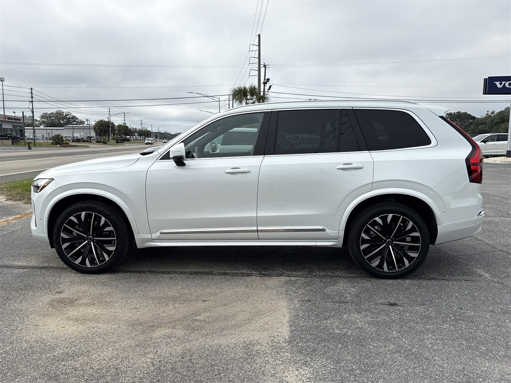 Crystal White Pearl 2026 Volvo XC90 B6 Plus 7-Seater AWD Automatic with Geartronic 2.0L I4 Turbocharged DOHC 16V LEV3-ULEV70 Protection Package Premier (All-Weather Floor Mats, Bumper Cover, Cargo Tray, First Aid Kit, and Wheel Locks), AWD, Cardamom Premium Synthetic, 10 Speakers, 3rd row seats: bucket, 4-Wheel Disc Brakes, ABS brakes, Air Conditioning, Alloy wheels, AM/FM radio: SiriusXM, Anti-whiplash front head restraints, Apple CarPlay, Auto High-beam Headlights, Auto-dimming door mirrors, Auto-dimming Rear-View mirror, Automatic temperature control, Brake assist, Bumpers: body-color, Delay-off headlights, Driver door bin, Driver vanity mirror, Dual front impact airbags, Dual front side impact airbags, Electronic Stability Control, Emergency communication system: Volvo Cars App w/4 Year Subscription, Exterior Parking Camera Rear, Four wheel independent suspension, Front anti-roll bar, Front Bucket Seats, Front Center Armrest w/Storage, Front dual zone A/C, Front reading lights, Fully automatic headlights, Garage door transmitter: HomeLink, Genuine wood dashboard insert, Genuine wood door panel insert, harman/kardon Premium Sound, Headlight cleaning, Heated door mirrors, Heated Front Bucket Seats, Heated front seats, Heated rear seats, Heated steering wheel, Illuminated entry, Integrated rear child seats, Knee airbag, Low tire pressure warning, Memory seat, Navigation System, Nordico Upholstery, Occupant sensing airbag, Outside temperature display, Overhead airbag, Panic alarm, Passenger door bin, Passenger vanity mirror, Power door mirrors, Power driver seat, Power Liftgate, Power moonroof, Power passenger seat, Power steering, Power windows, Radio data system, Radio: High Performance Audio System, Rain sensing wipers, Rear air conditioning, Rear anti-roll bar, Rear dual zone A/C, Rear fog lights, Rear reading lights, Rear seat center armrest, Rear window defroster, Rear window wiper, Remote keyless entry, Security system, Speed control, Speed-sensing steering, Split folding rear seat, Spoiler, Steering wheel mounted audio controls, Tachometer, Telescoping steering wheel, Traction control, Trip computer, Turn signal indicator mirrors, Variably intermittent wipers, and Wheels: 21" 5-Multi Spoke Black Diamond Cut Alloy. AWD, Cardamom Premium Synthetic.