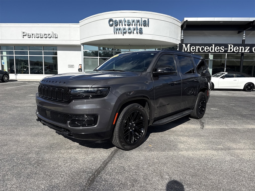 Carbide Appearance Package, Flexible Seating Group (40/20/40 2nd Row Bench Power Tip/Slide, 60/40 Power Recline 3rd Row Seat, 8-Passenger Seating, and Full Length Floor Console), HD Trailer Tow Package (DISC) (3.92 Rear Axle Ratio (DISC), Electronic Rear Limited Slip Differential, Heavy-Duty Engine Cooling, Removable Rear Tow Hook, Trailer Brake Control, and Trailer Hitch Zoom), Quick Order Package 25F Carbide (3 Panel Sunroof, Adjustable Roof Rail Crossbars, Black Interior Accents, Cargo Cover, Piano Black Exterior Accents, Reversible Carpet/Vinyl Cargo Mat, and Wheels: 20" x 9" Gloss Black Painted Aluminum), 10 Speakers, Memory seat, Navigation System, Pedal memory, Power driver seat, Steering wheel mounted audio controls, 3rd row seats: bench, 4-Wheel Disc Brakes, ABS brakes, Adjustable pedals, Air Conditioning, Alloy wheels, AM/FM radio: SiriusXM with 360L, Anti-whiplash front head restraints, Apple CarPlay/Android Auto, Audio memory, Auto-dimming door mirrors, Auto-dimming Rear-View mirror, Auto-leveling suspension, Automatic temperature control, Brake assist, Bumpers: body-color, Compass, Delay-off headlights, Driver door bin, Driver vanity mirror, Driver's Seat Mounted Armrest, Dual front impact airbags, Dual front side impact airbags, Electronic Stability Control, Emergency communication system: Wagoneer Connect, Exterior Parking Camera Rear, Four wheel independent suspension, Front anti-roll bar, Front Bucket Seats, Front Center Armrest w/Storage, Front dual zone A/C, Front fog lights, Front reading lights, Fully automatic headlights, Garage door transmitter, Genuine wood console insert, Genuine wood dashboard insert, Genuine wood door panel insert, Heated door mirrors, Heated front seats, Heated rear seats, Heated steering wheel, Illuminated entry, Knee airbag, Leather Trimmed Bucket Seats, Low tire pressure warning, Normal Duty Suspension, Occupant sensing airbag, Outside temperature display, Overhead airbag, Overhead console, Panic alarm, Passenger door bin, Passenger seat mounted armrest, Passenger vanity mirror, Power adjustable front head restraints, Power door mirrors, Power Liftgate, Power passenger seat, Power steering, Power windows, Radio data system, Radio: Uconnect 5 Nav w/10.1" Display, Rain sensing wipers, Rear air conditioning, Rear anti-roll bar, Rear dual zone A/C, Rear reading lights, Rear seat center armrest, Rear window defroster, Rear window wiper, Reclining 3rd row seat, Remote keyless entry, Security system, Speed control, Speed-sensing steering, Speed-Sensitive Wipers, Split folding rear seat, Steering wheel memory, Tachometer, Telescoping steering wheel, Tilt steering wheel, Traction control, Trip computer, Turn signal indicator mirrors, Variably intermittent wipers, Ventilated front seats, Voltmeter, Wheels: 20" x 9.0" Premium 2 Aluminum, and Wheels: 22" x 9.0" Painted Gloss Black. Odometer is 30298 miles below market average!